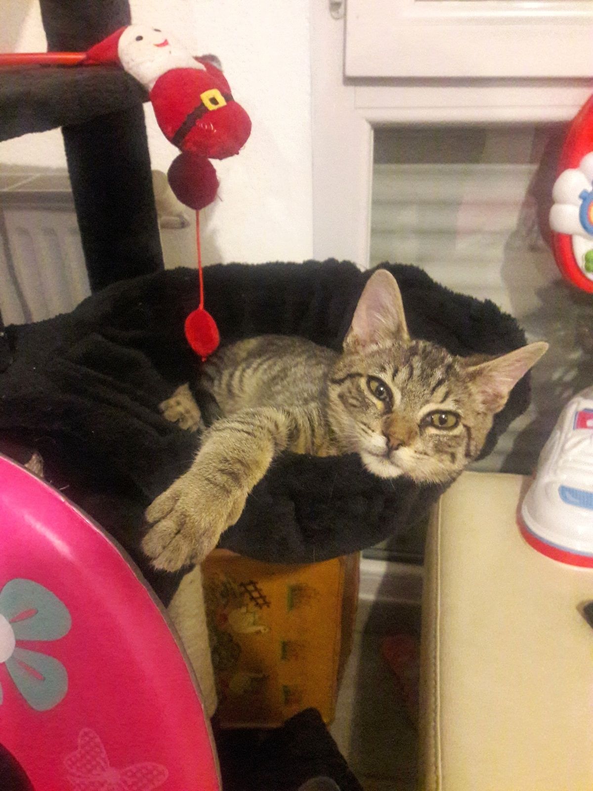 Olane a été récupérée à la SACPA. En fin de traitement pour la teigne.