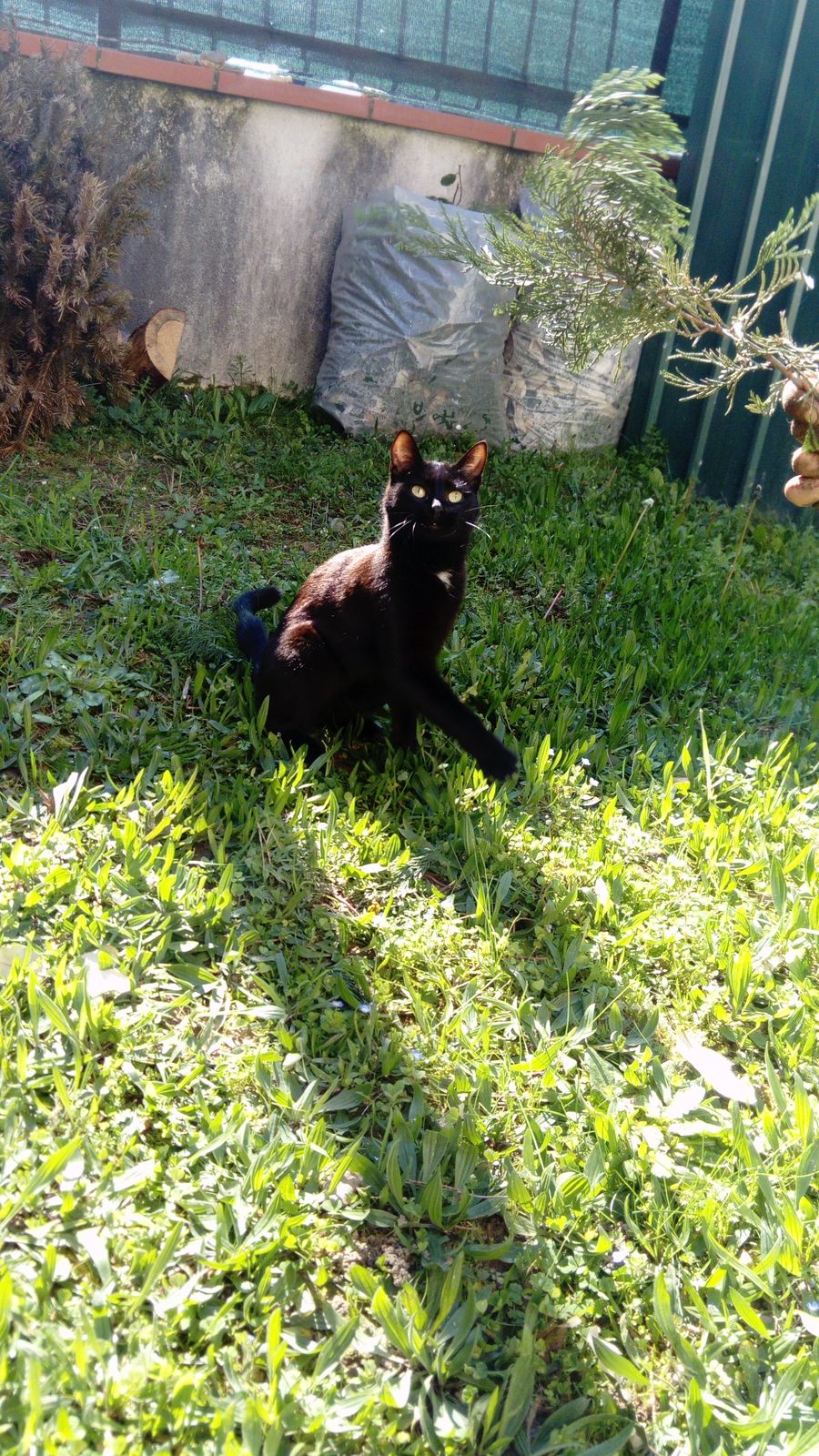 Ca y est nous lui laissons l'accès à l'extérieur et il a bien compris que quand il rentre sans qu'on l'appelle il a une friandise alors il ne se fait pas prier !